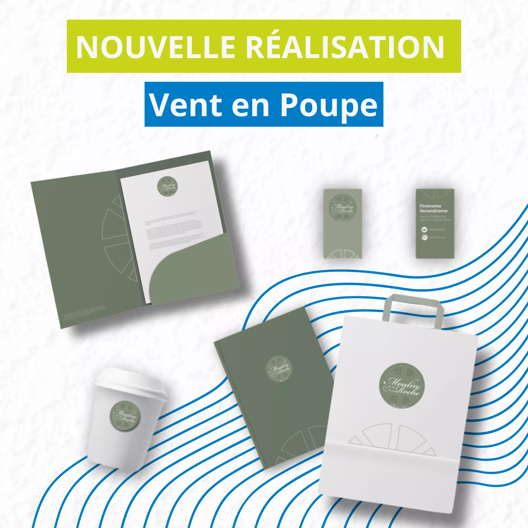 Le choix des supports n’est jamais laissé au hasard : ils doivent être en cohérence avec votre domaine d’activité. Pour Le Moulin de la Roche, nous avons ainsi réalisé plusieurs mockups : cartes de visite, sacs, gobelets, pochettes… Ces supports ont permis à notre client de mieux se projeter dans sa nouvelle identité graphique et d’imaginer les usages possibles au quotidien. Ce travail peut par exemple s’accompagner d’une création de sites web pour gîtes et moulins afin de renforcer la visibilité en ligne du lieu.