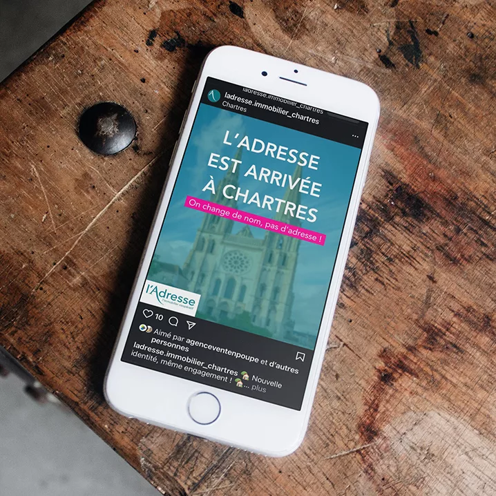 Nous adressons les requêtes locales à forte intention : agence immobilière Chartres, estimation immobilière Chartres…, ainsi que visite vidéo et programme neuf Chartres. L’objectif consiste à dynamiser la notoriété de la nouvelle agence du réseau coopératif L’Adresse et à capter une audience qualifiée. Nous amplifions les publications par des campagnes Meta Ads géociblées et par un travail de maillage entre posts, fiches biens et landing pages “estimation” pour nourrir le tunnel de conversion. Des reportings mensuels suivent portée, VTR, clics, messages et prises de rendez-vous pour ajuster contenus et investissements.