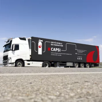 Nous avons aussi conçu des modèles dédiés à chacun des trois canaux métiers, ainsi que des versions très spécifiques pour les véhicules de formation Eurofeu CAPSI (Centre d’Apprenance et de Perfectionnement à la Sécurité Incendie), dont un semi-remorque et un véhicule 20 m³. La pose a ensuite été réalisée par le prestataire d’Eurofeu. Cette logique est pleinement alignée avec un groupe qui déploie des unités mobiles CAPSI sur tout le territoire.