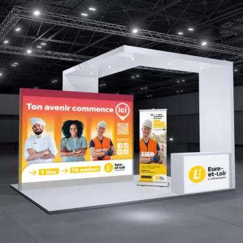 Pour déployer une communication événementielle cohérente sur tous vos supports, découvrez aussi nos réalisations kakémono Rouxel et stand Chartres Métropole, puis confiez-nous votre prochain dispositif terrain.