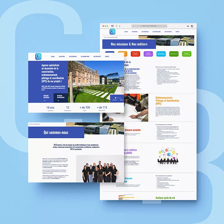 Sur le projet CB Economie, notre savoir-faire s’est traduit par une identité visuelle modernisée, capable de porter la technicité du métier sans perdre en lisibilité, et par un site internet sur mesure pensé pour mettre en avant les savoir-faire et les références de l’entreprise. Les logos animés apportent une dimension contemporaine et dynamique à la marque, tandis que la nouvelle charte graphique garantit l’homogénéité de la communication sur la durée.
